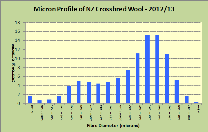 NZWTA has recently completed an analysis of test data from the 2012-13 season. A profile of the NZ clip can be formed from test data indicating the typical distribution for the main tested parameters. It should be noted this information relates only to greasy wool.